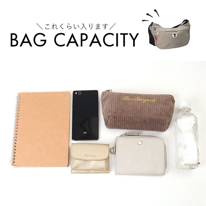 ・コンパクトなのに500mlのペットボトルや長財布も余裕で入るサイズ感。軽いのにしっかり収納!