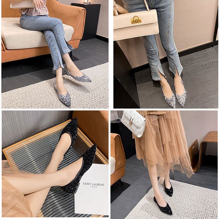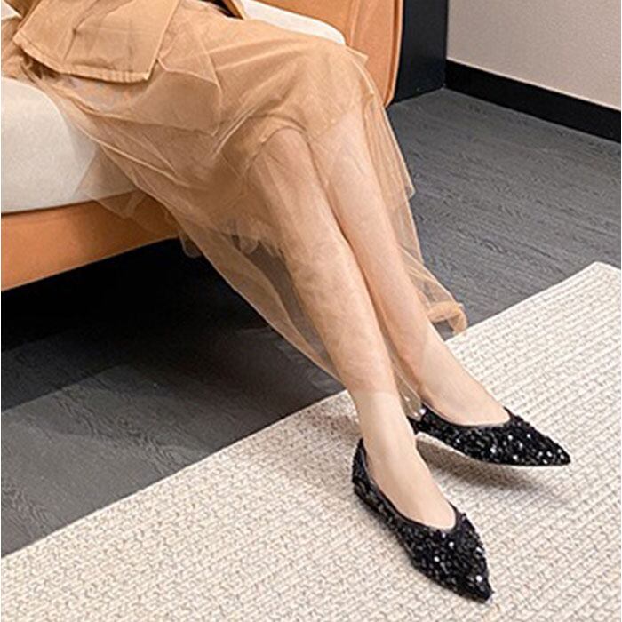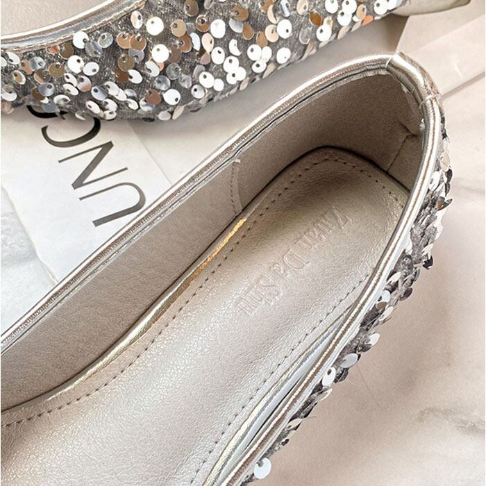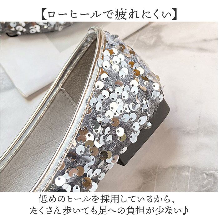 ・ローヒールで歩きやすい、スパンコールパンプス。