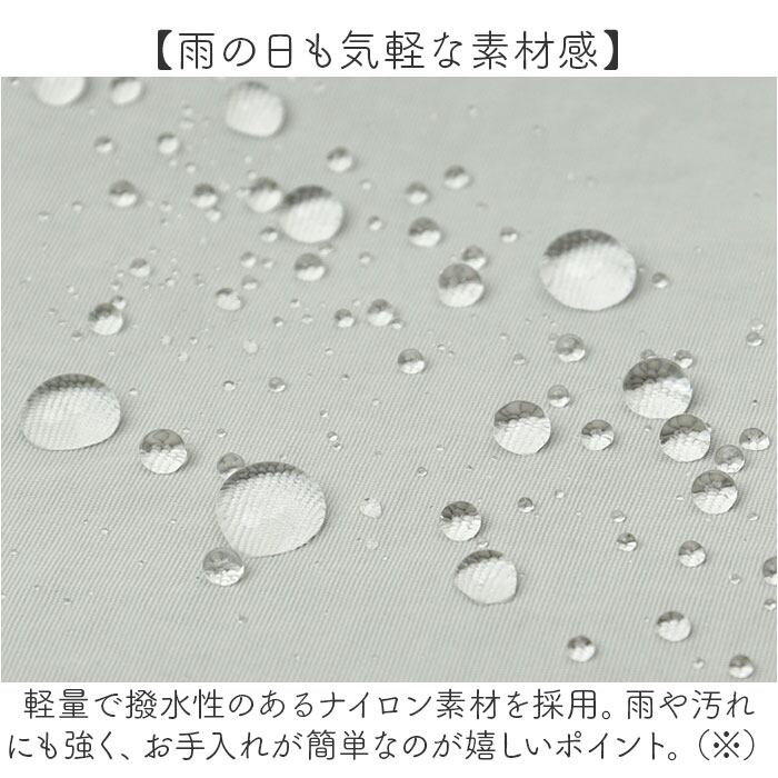 ・軽量で撥水性のあるナイロン素材を採用。雨や汚れにも強く、お手入れが簡単なのが嬉しいポイント。