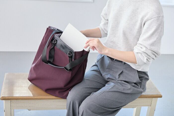 ・一見するときちんと感のあるトートバッグ。ビジネスシーンにも映える上品なデザイン。