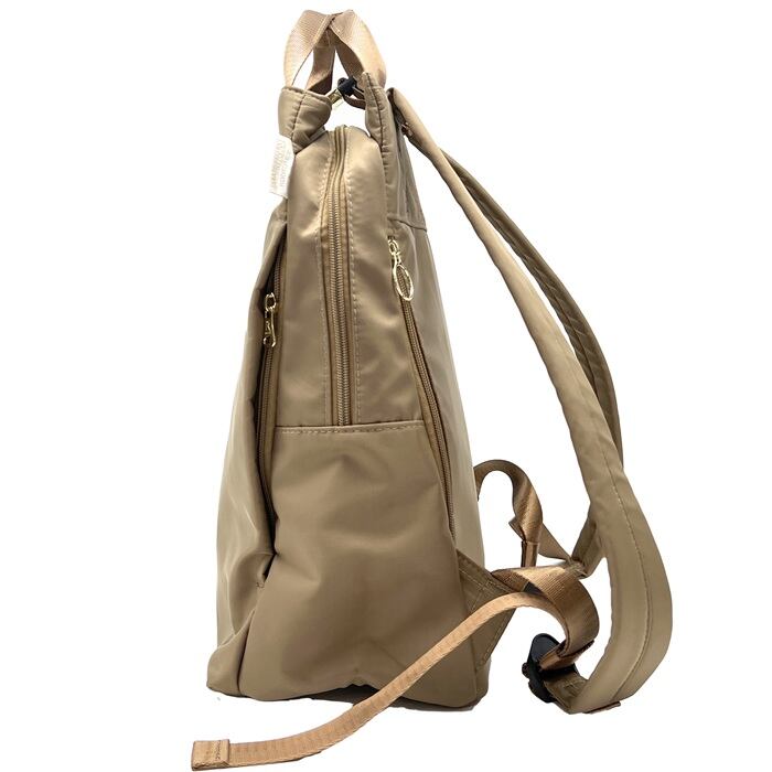 ・厚手でしなやかな光沢感のあるナイロン素材。軽くて丈夫、撥水加工で汚れにくく、雨の日も晴れの日も天気を気にせず持ち歩けます。