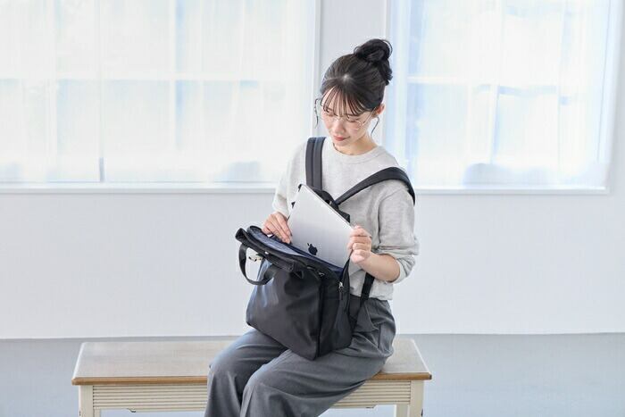 13インチPC、A4サイズファイルを縦に入れられるので、ビジネスバッグとしても大活躍!