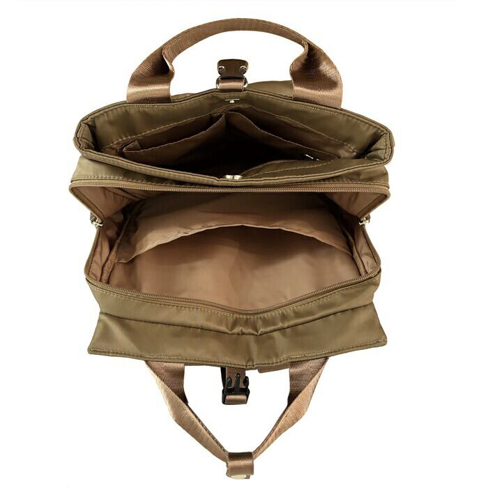 ・荷物の整理がしやすい二口タイプ。すぐに取り出したいものは、前面のあおりポケットへ。