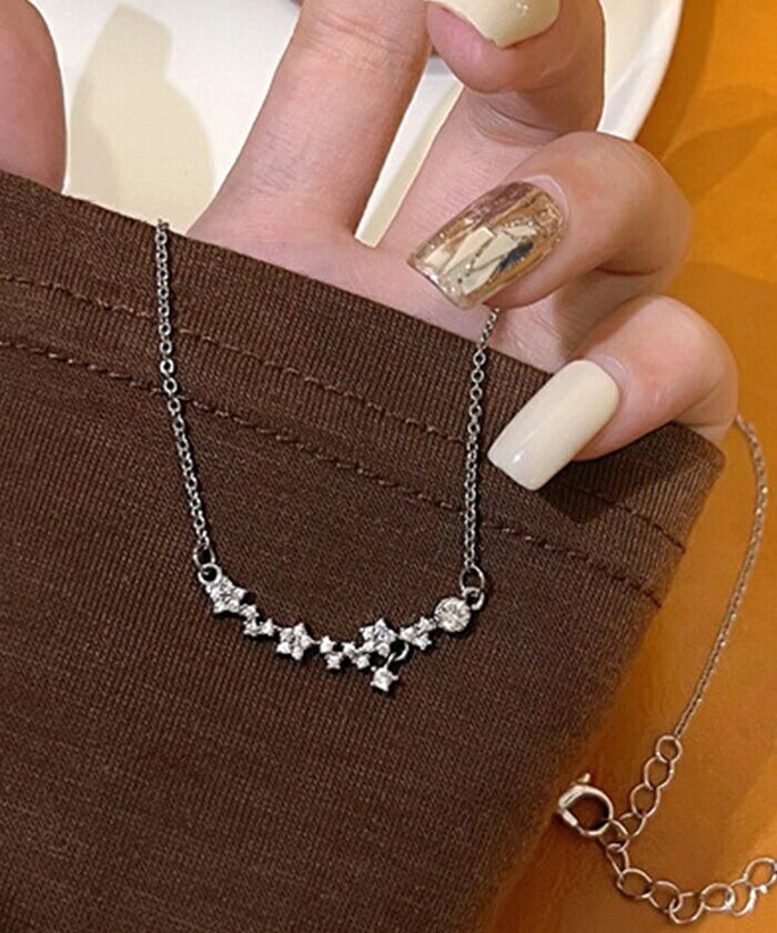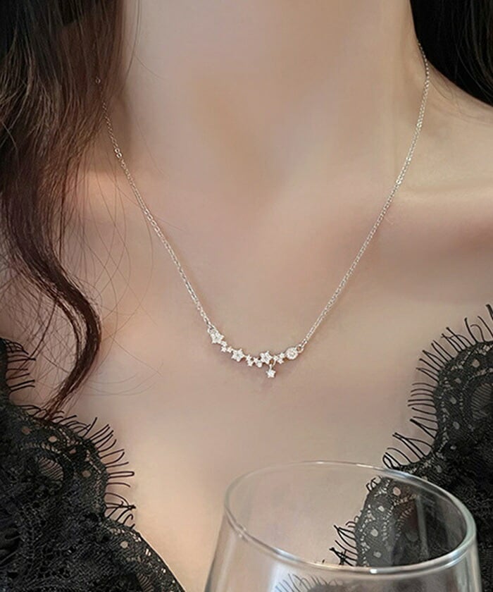 ・無数の星が連なる繊細な美しさが上品さを引き立て、胸元を美しく魅せてくれるネックレス。