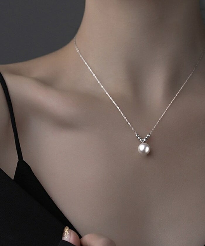 ・シンプルながら高級感のある一粒パールネックレス。