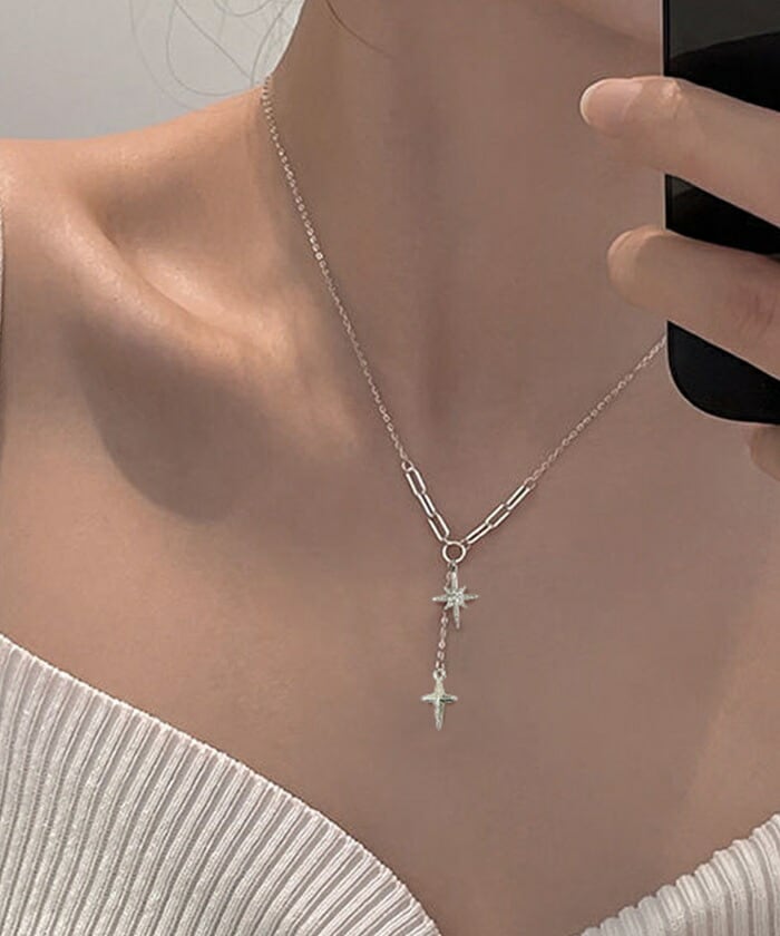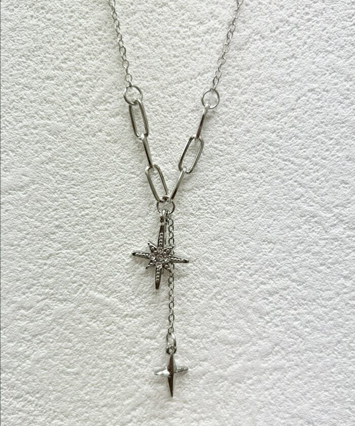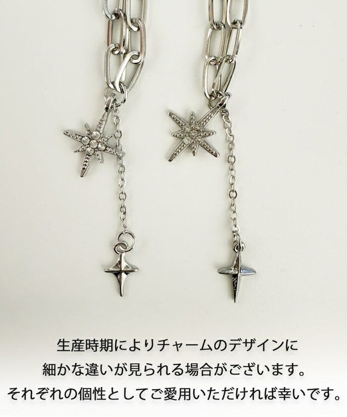 ・きらめくスターとクロスのチャームがクールな印象のネックレス。