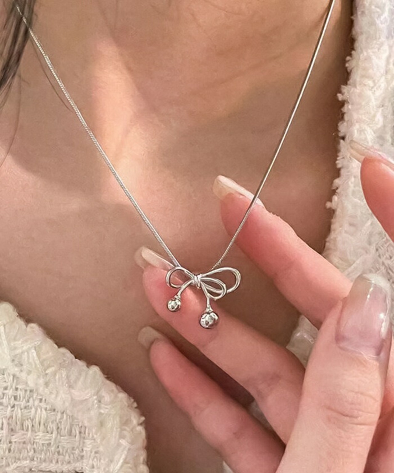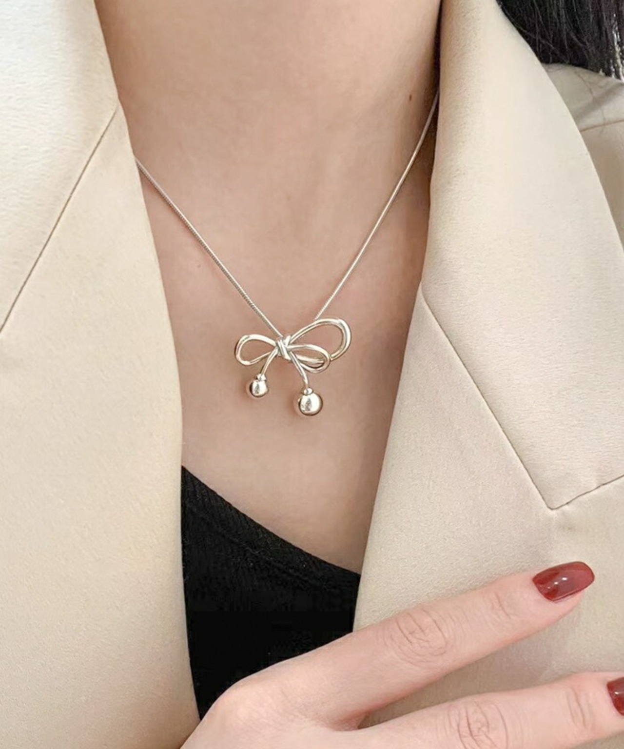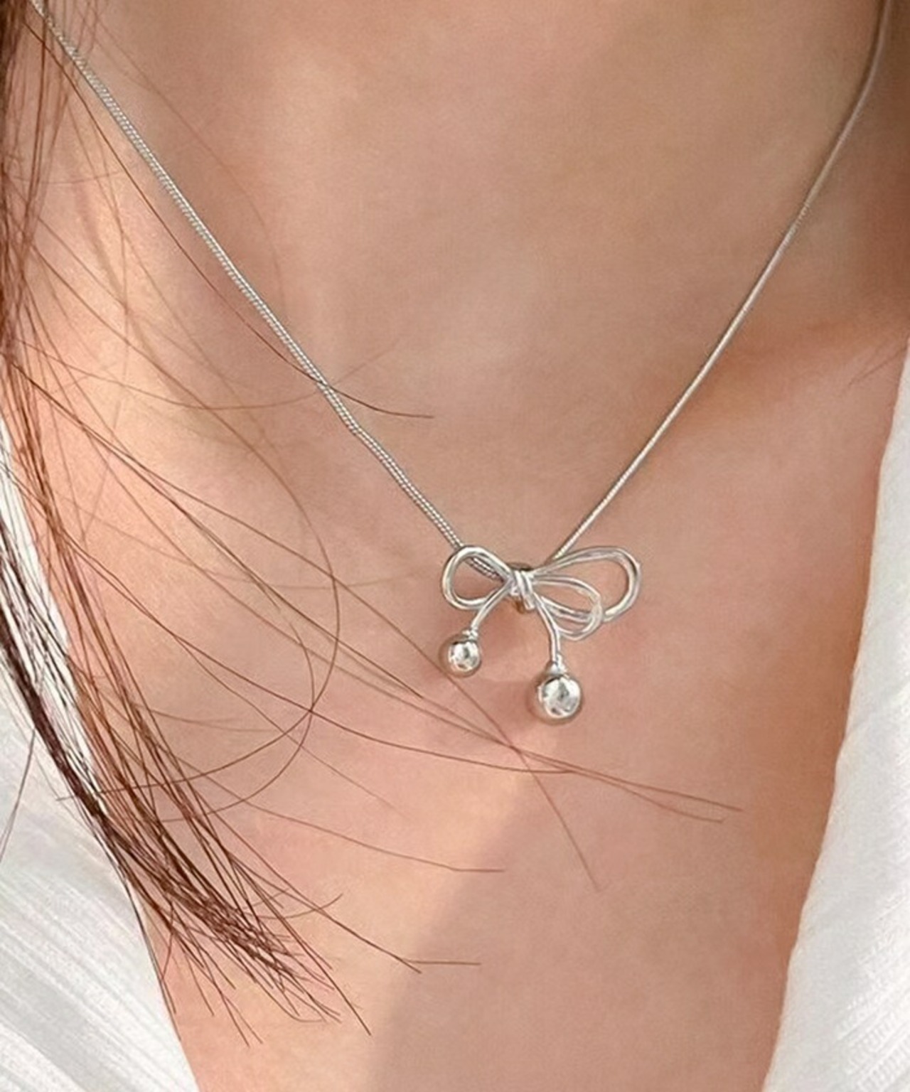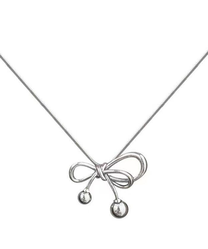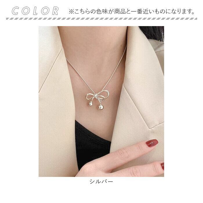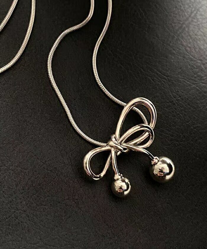 ・アシンメトリーデザインのシンプルなリボンネックレス。