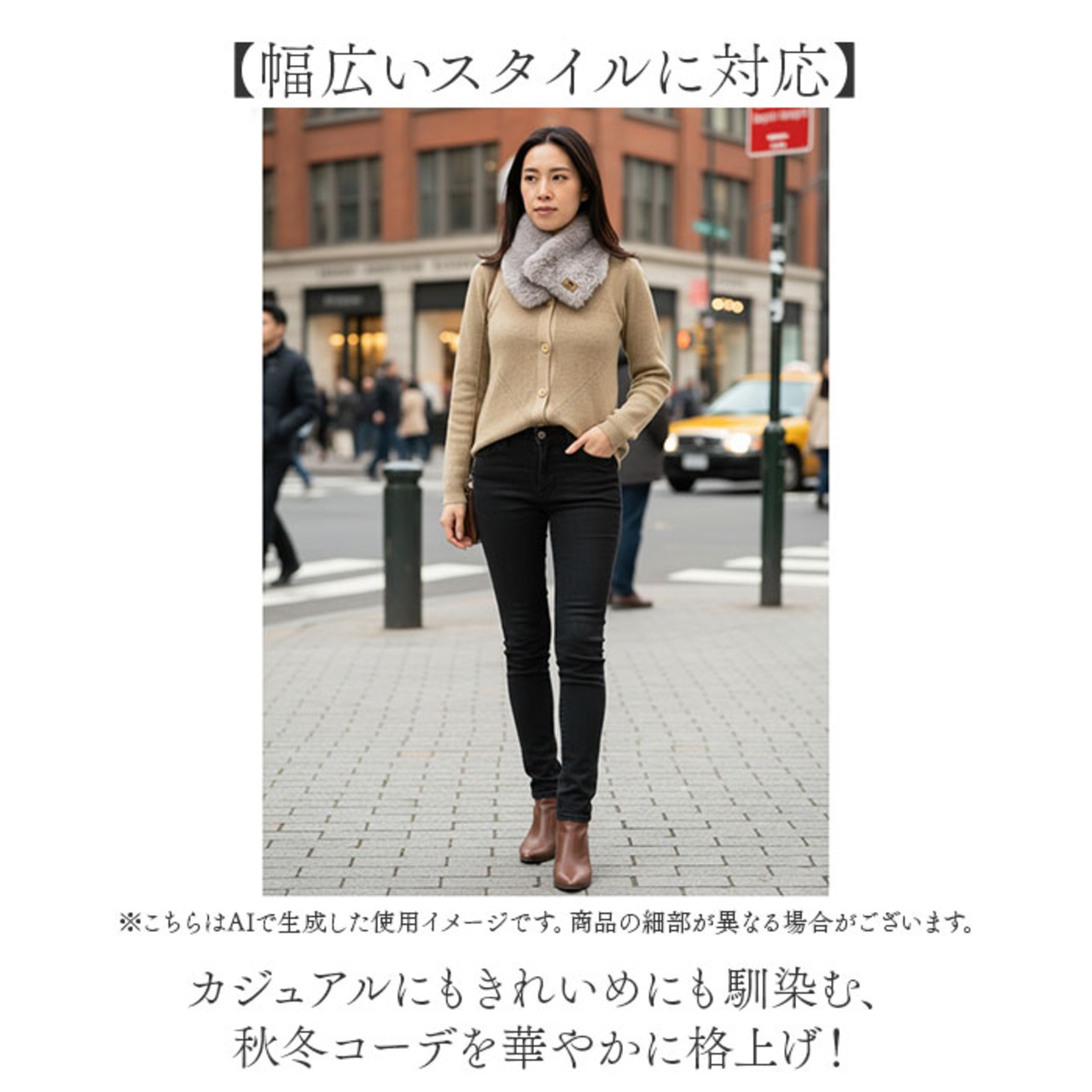 ・なめらかで心地よいフェイクファー素材が首元を優しく包む♪