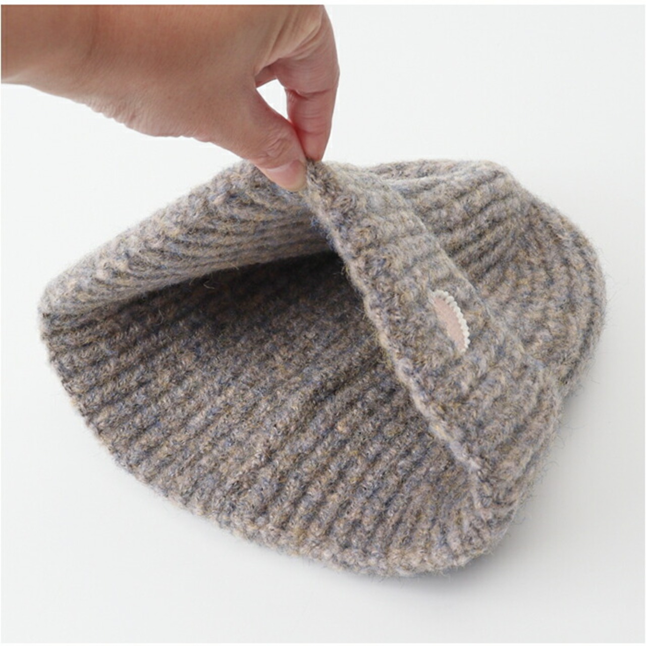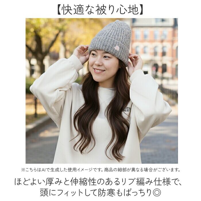 ・ほどよい厚みと伸縮性のあるリブ編み仕様で、頭にフィットして防寒もばっちり◎