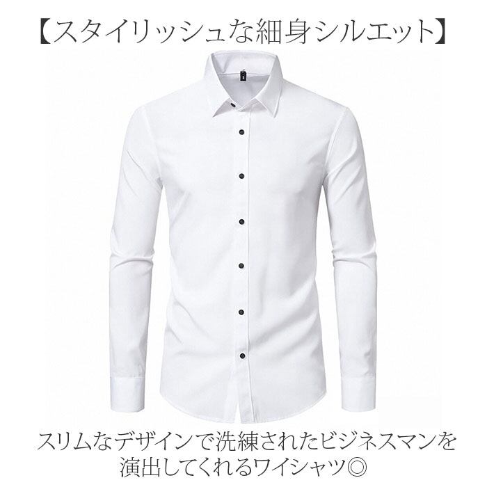 【スタイリッシュな細身シルエット】 スリムなデザインで洗練されたビジネスマンを演出してくれるワイシャツ◎