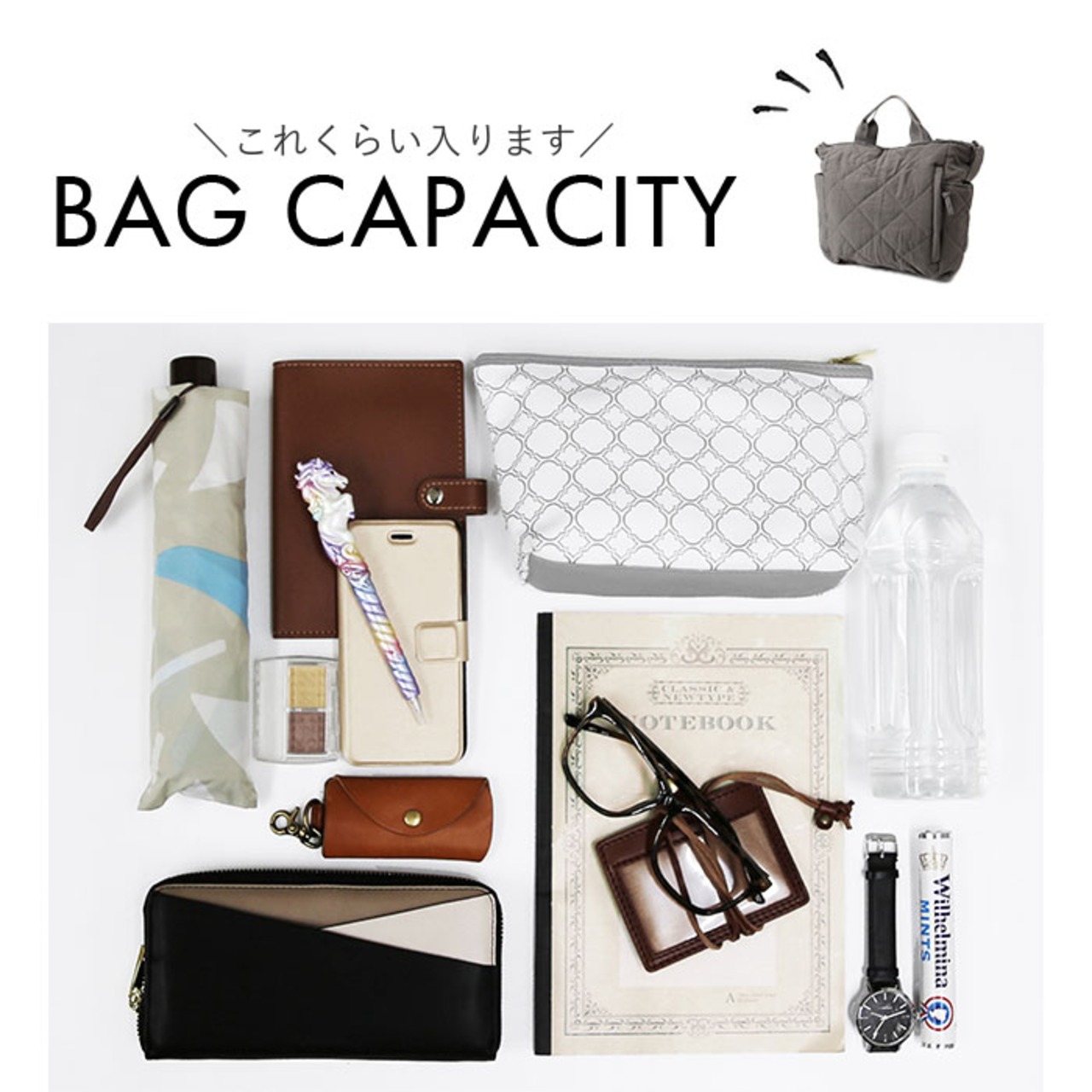 ・A4サイズがすっぽり。お出かけに必要なものがひとまとめ!