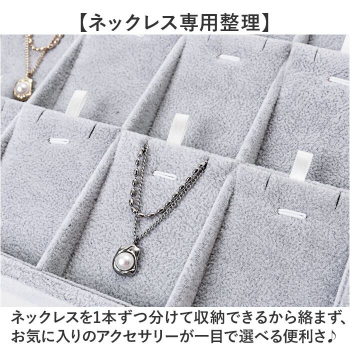 ・ネックレスを1本ずつ分けて収納できるから絡まず、お気に入りのアクセサリーが一目で選べる便利さ♪