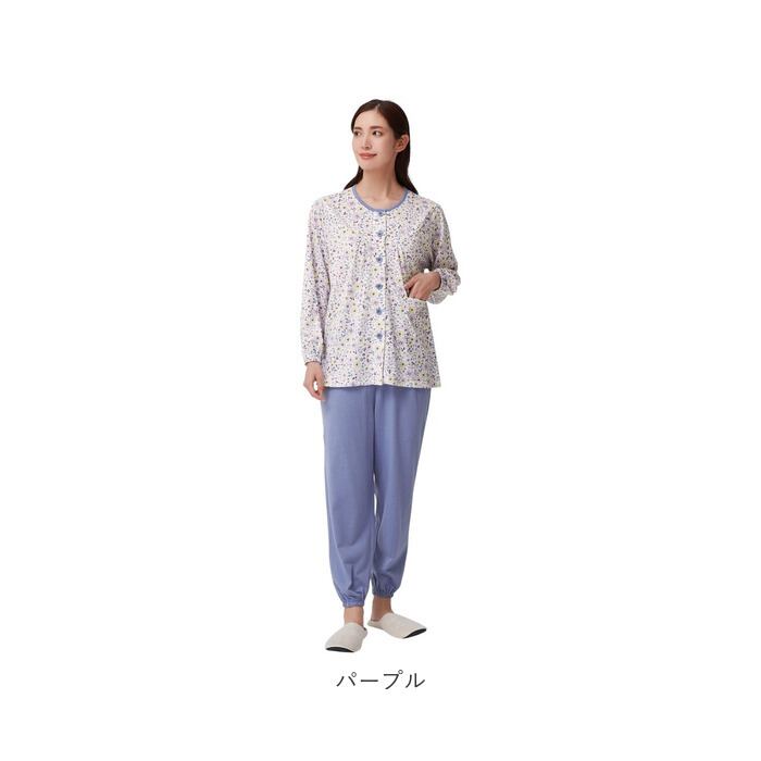 ・襟なしの前開きデザインで着替えがスムーズ!