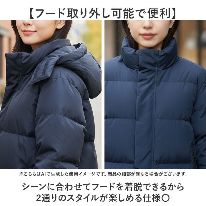 ・シーンに合わせてフードを着脱できるから2通りのスタイルが楽しめる仕様〇