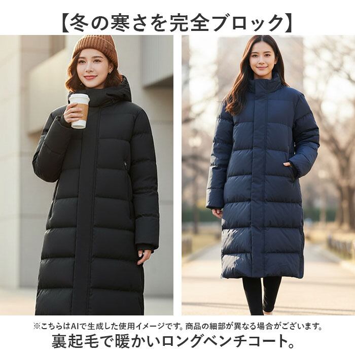 ・裏起毛で暖かいロングベンチコート。