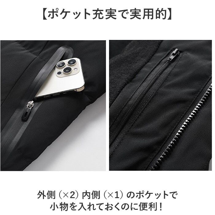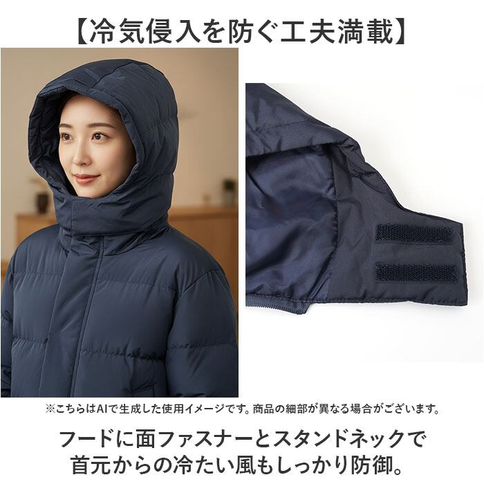 ・フードに面ファスナーとスタンドネックで首元からの冷たい風もしっかり防御。