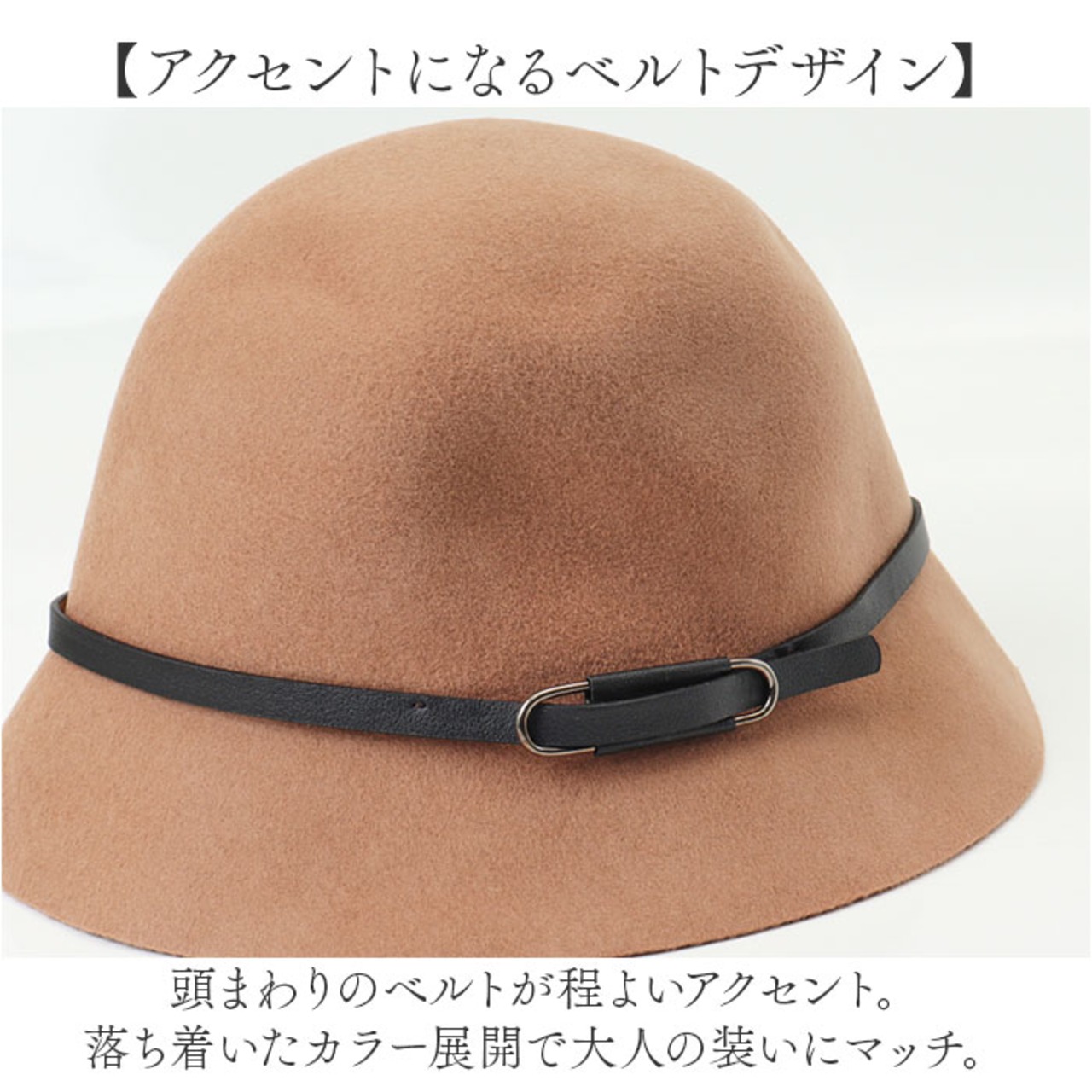 ・頭まわりのベルトが程よいアクセント。落ち着いたカラー展開で大人の装いにマッチ。