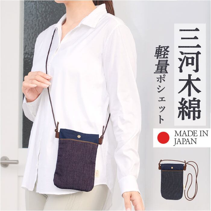・三河木綿を使用した肌触りの良い日本製ポシェット〇