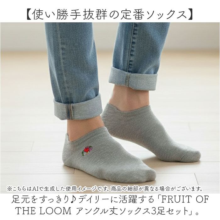 ・足元をすっきり♪デイリーに活躍する「FRUIT OF THE LOOM アンクル丈ソックス3足セット」。