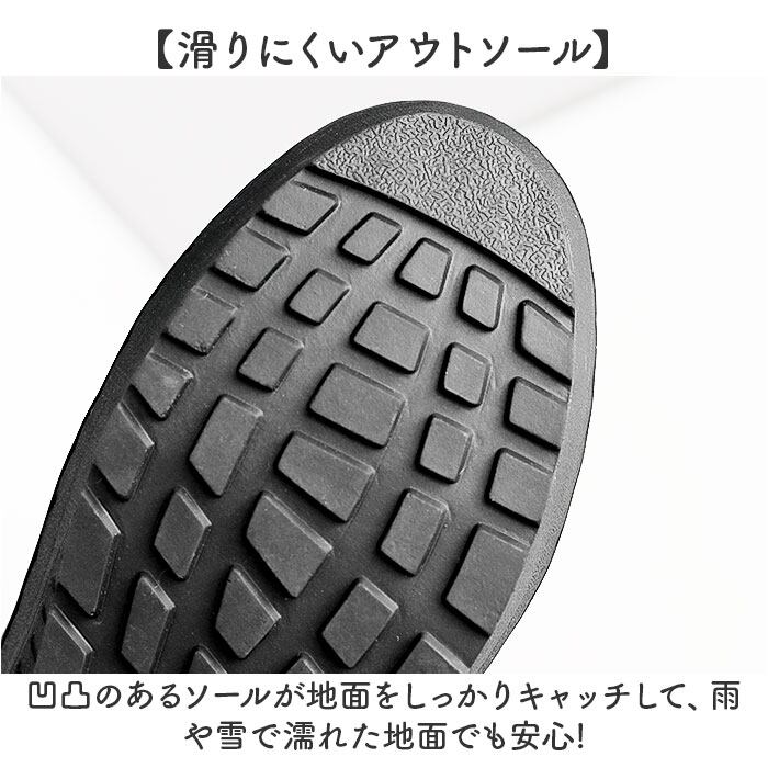 ・凹凸のあるソールが地面をしっかりキャッチして、雨や雪で濡れた地面でも安心!