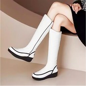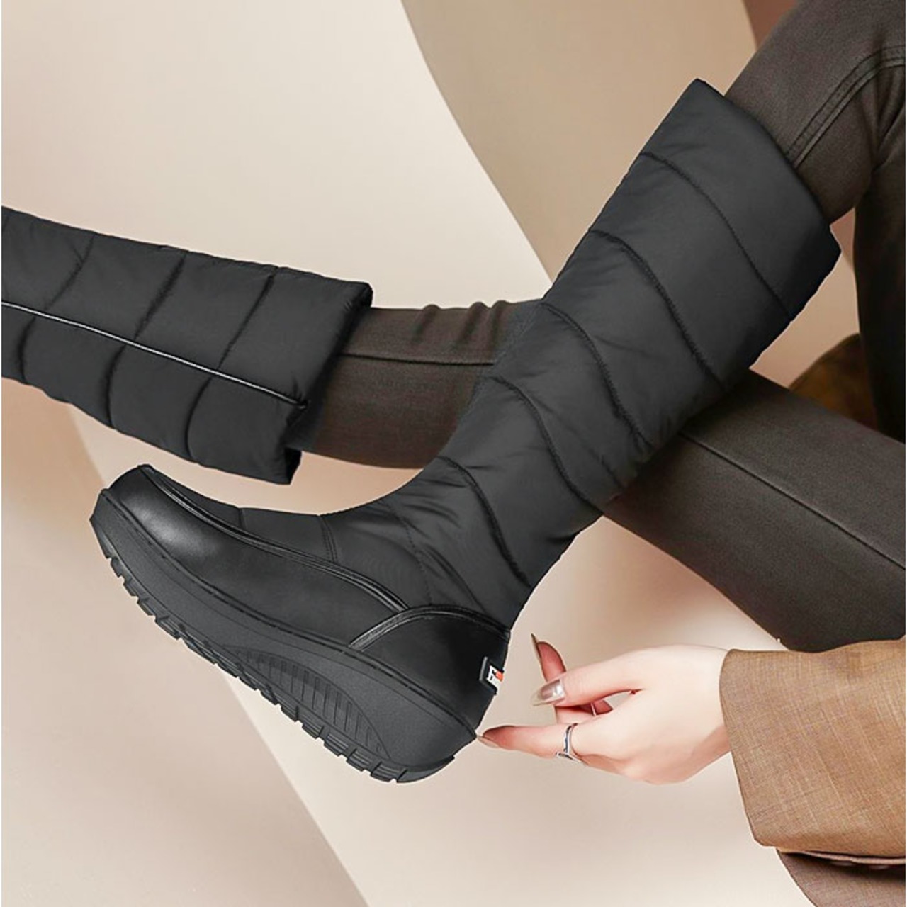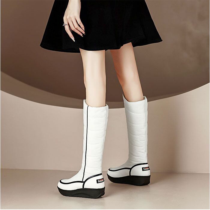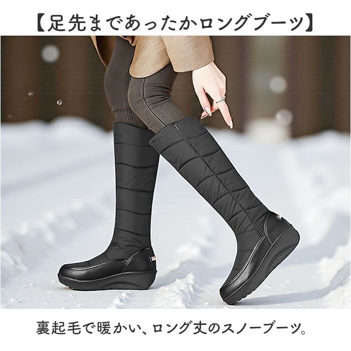 ・裏起毛で暖かい、ロング丈のスノーブーツ。