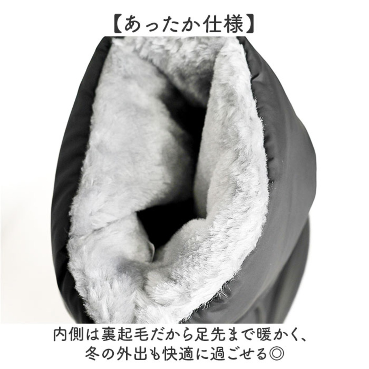 ・内側は裏起毛だから足先まで暖かく、冬の外出も快適に過ごせる◎