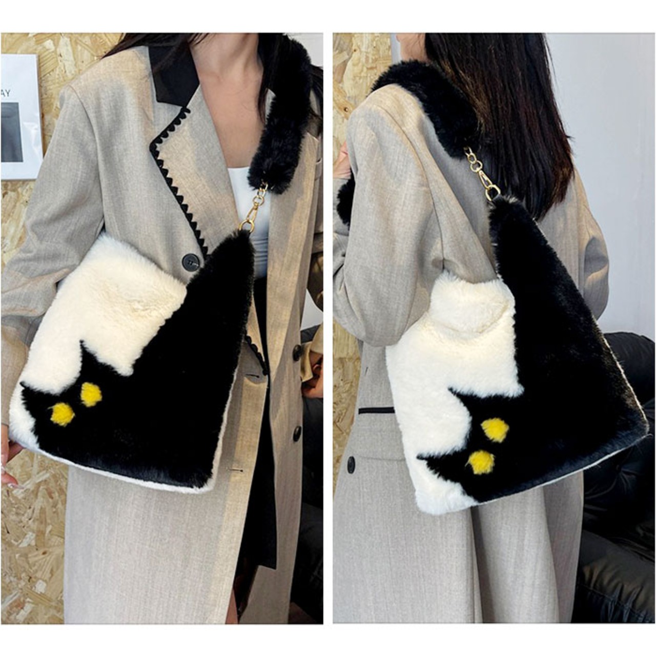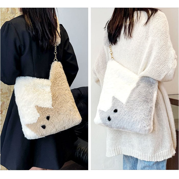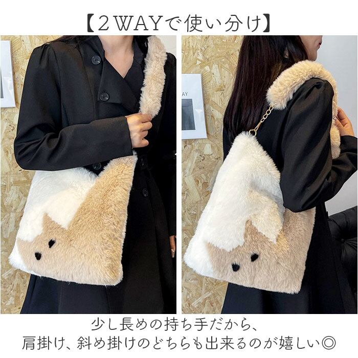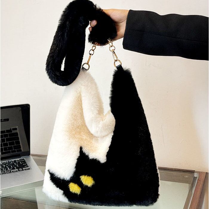 ・猫柄×ファーが大人可愛い♪レディース ファーバッグ。