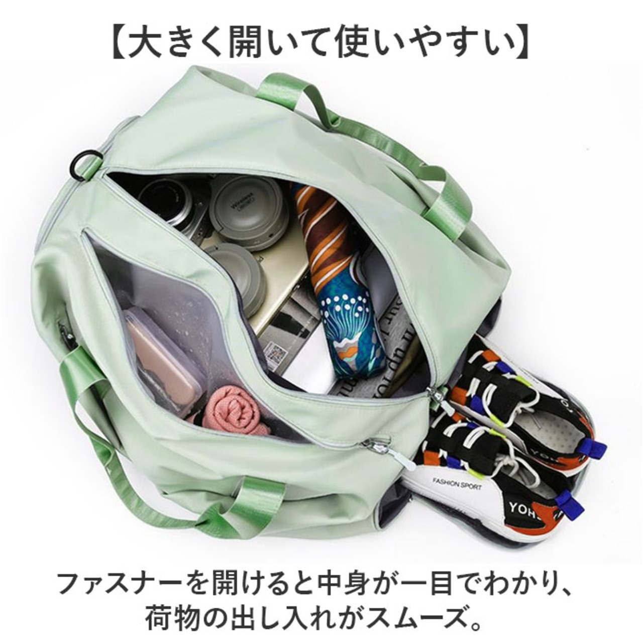 ・濡れたものもOKな撥水ポケット、シューズポケット、小物も分けて収納できて便利◎