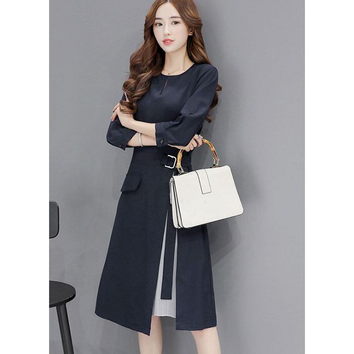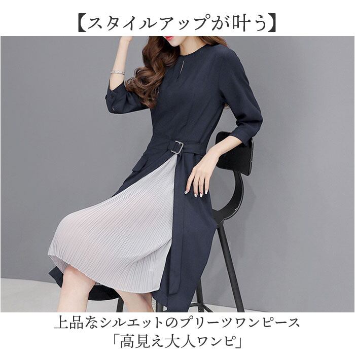 ・上品なシルエットのプリーツワンピース「高見え大人ワンピ」