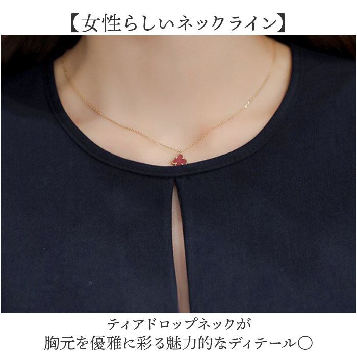 ・ティアドロップネックが胸元を優雅に彩る魅力的なディテール〇