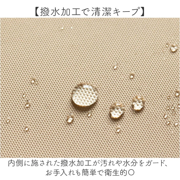 ・内側に施された撥水加工が汚れや水分をガード、お手入れも簡単で衛生的〇