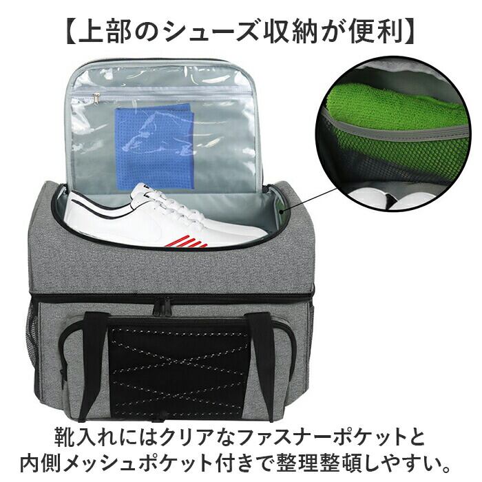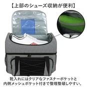 ・靴入れにはクリアなファスナーポケットと内側メッシュポケット付きで整理整頓しやすい。