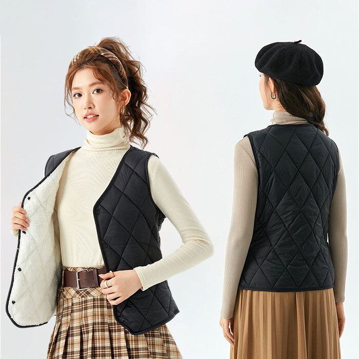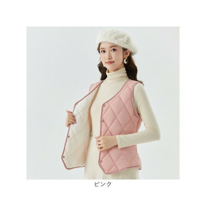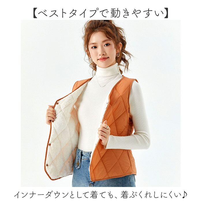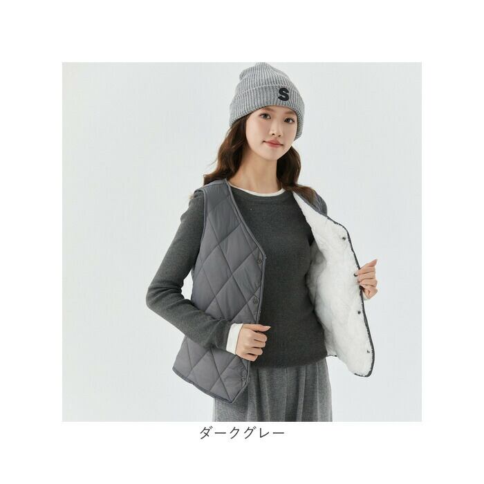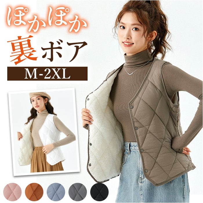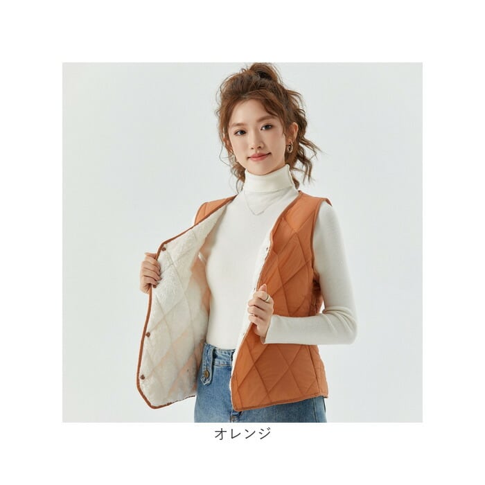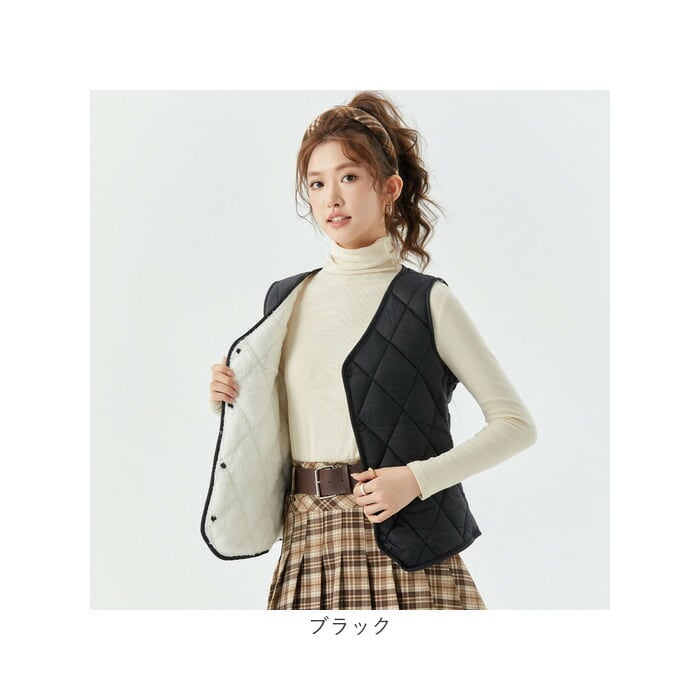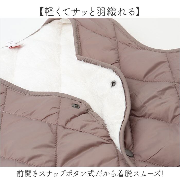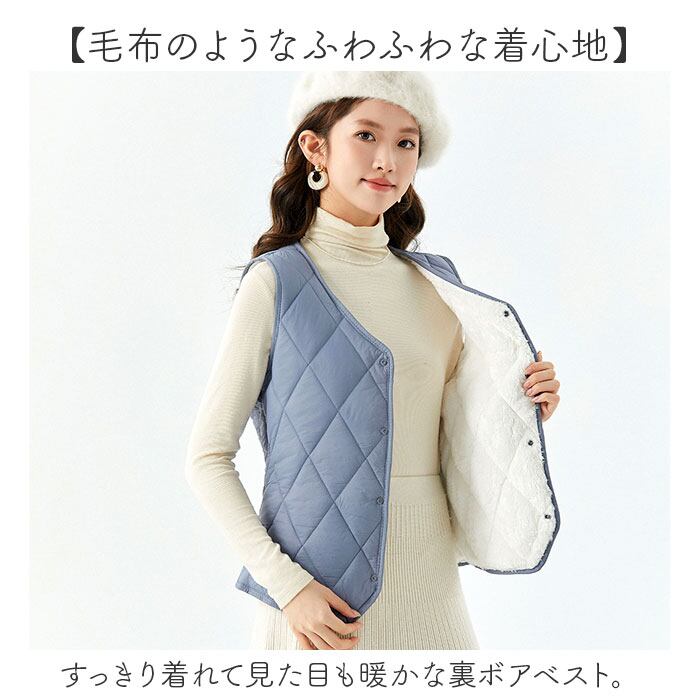 ・すっきり着れて見た目も暖かな裏ボアベスト。