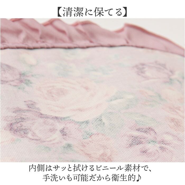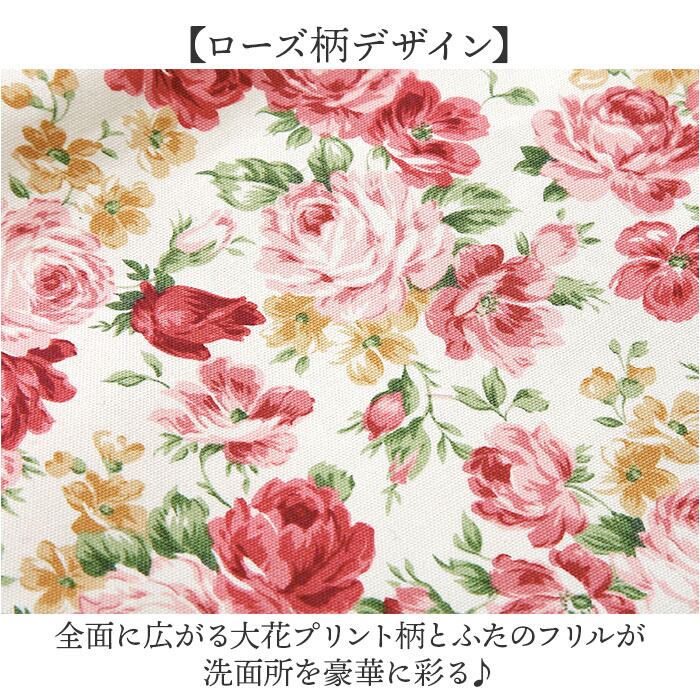 ・全面に広がる大花プリント柄とふたのフリルが洗面所を豪華に彩る♪