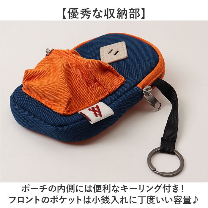 ・ポーチの内側には便利なキーリング付き!フロントのポケットは小銭入れに丁度いい容量♪