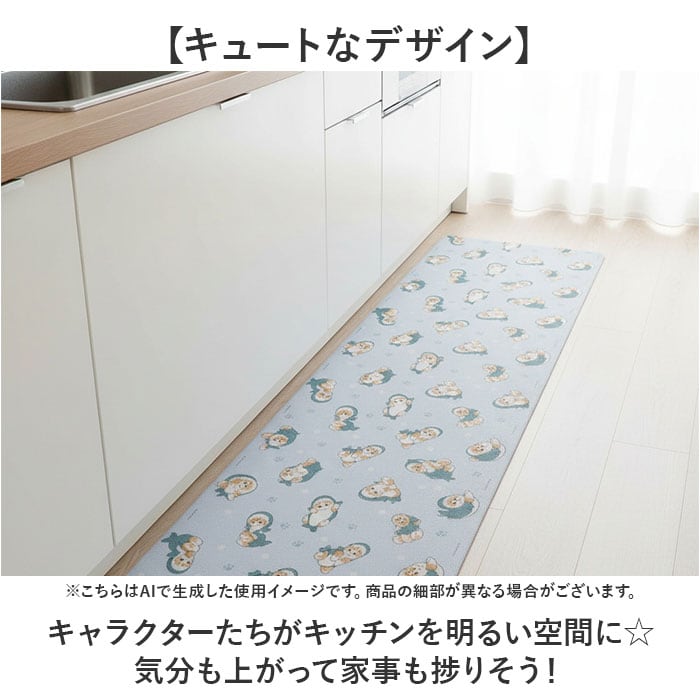 ・キッチンを彩る可愛いキャラクターデザインの「PVC キッチンマット(約45×180cm)」。