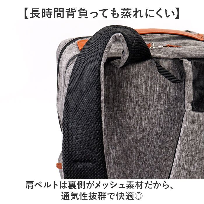 ・肩ベルトは裏側がメッシュ素材だから、通気性抜群で快適◎