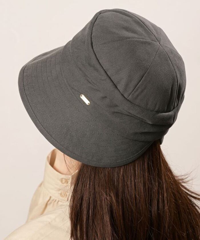 ・上品な極細コーデュロイ生地。後ろはスリットになっていて被りやすく、ゴールドのプレートがおしゃれ。