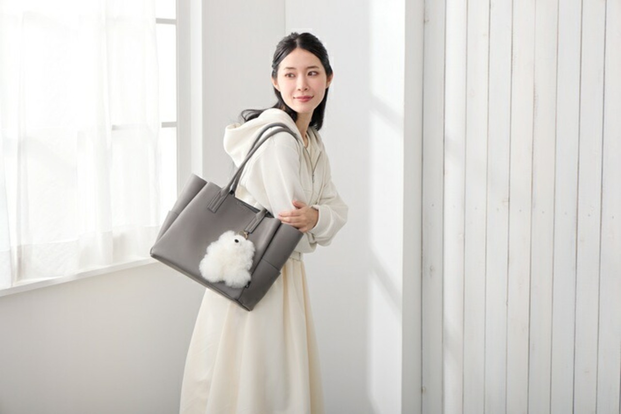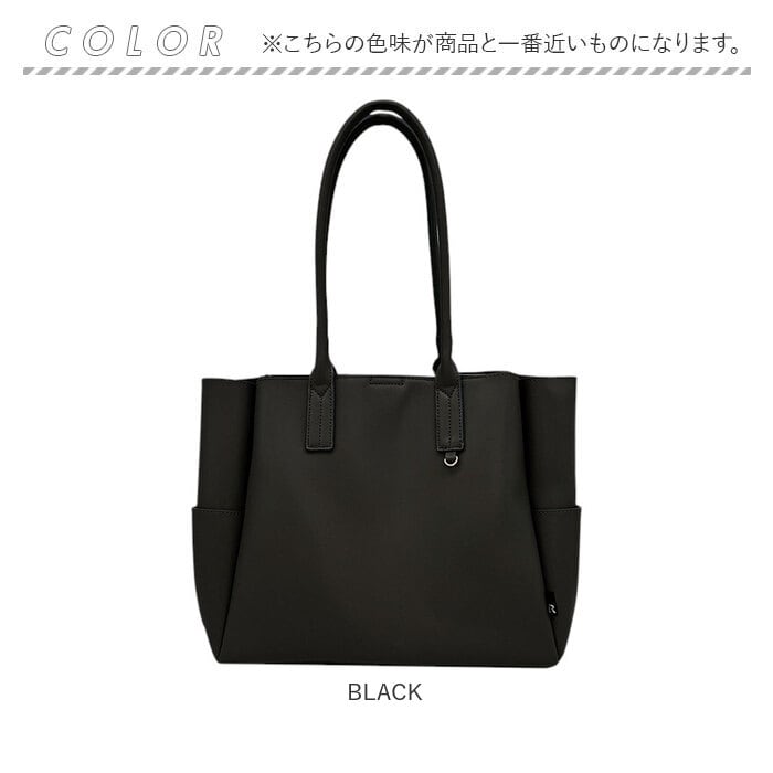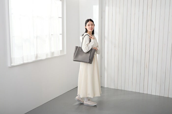 ・底マチが広めに取られているため、見た目はすっきりしていても中身はたっぷり。A4ファイルやポーチ、ペットボトルなど、お仕事にもプライベートにも必要なものをしっかり収納できます。