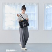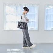 ・A4がぴったり収まる横長サイズ。長めのハンドルがアクセント。スマートに肩掛けできるのでオトナのレッスンバッグとしても◎。