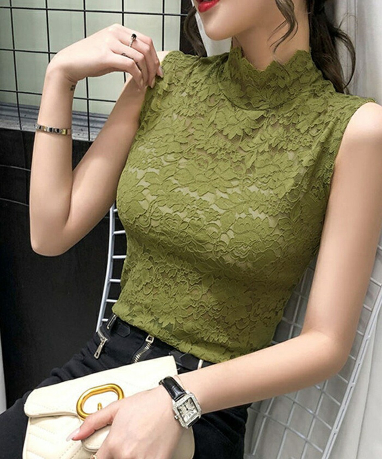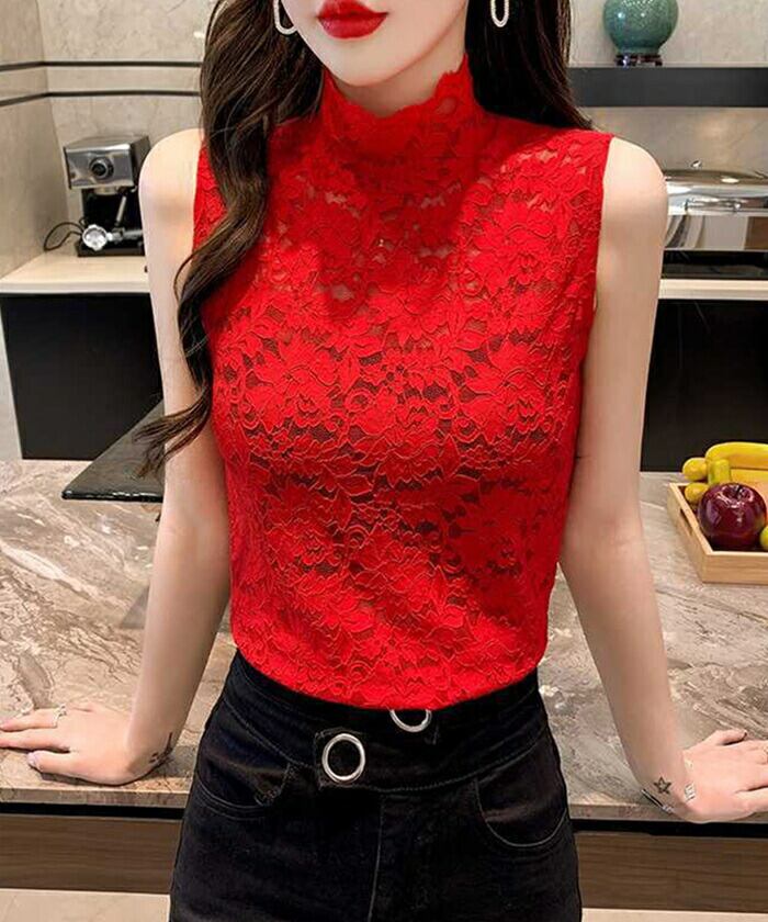 ・総レースでとってもガーリー&セクシーなハイネックタンクトップ