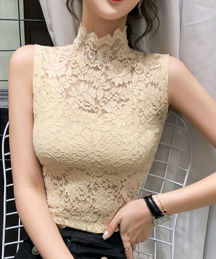 総レースハイネックタンクトップ