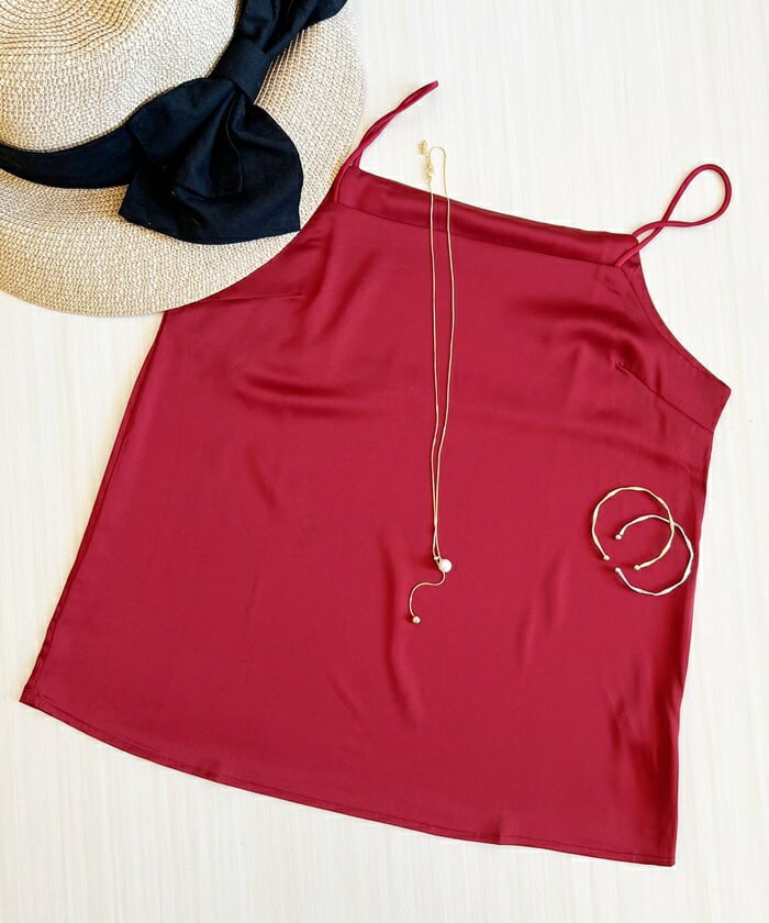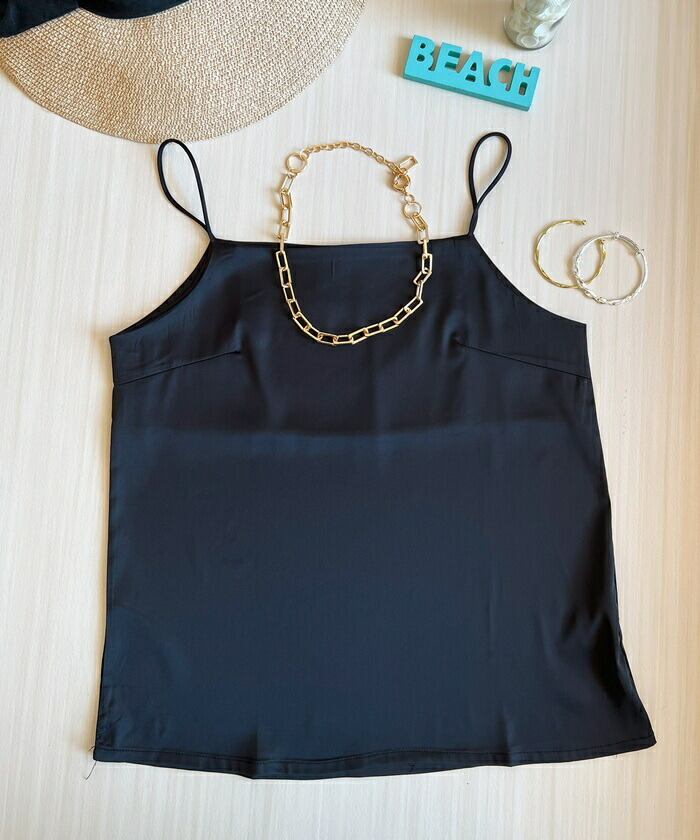 ・滑らかなシルクタッチ素材が魅力のキャミソール。