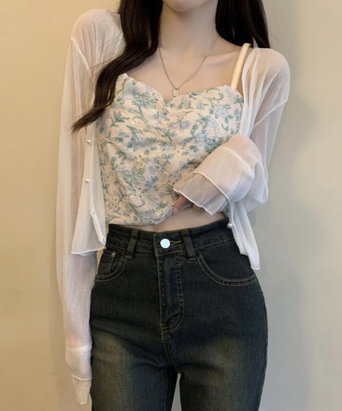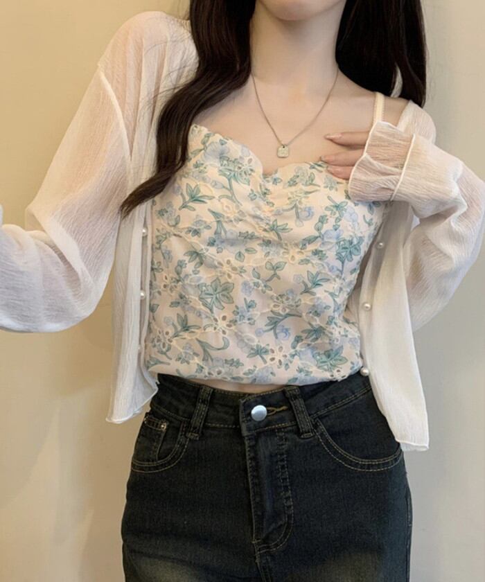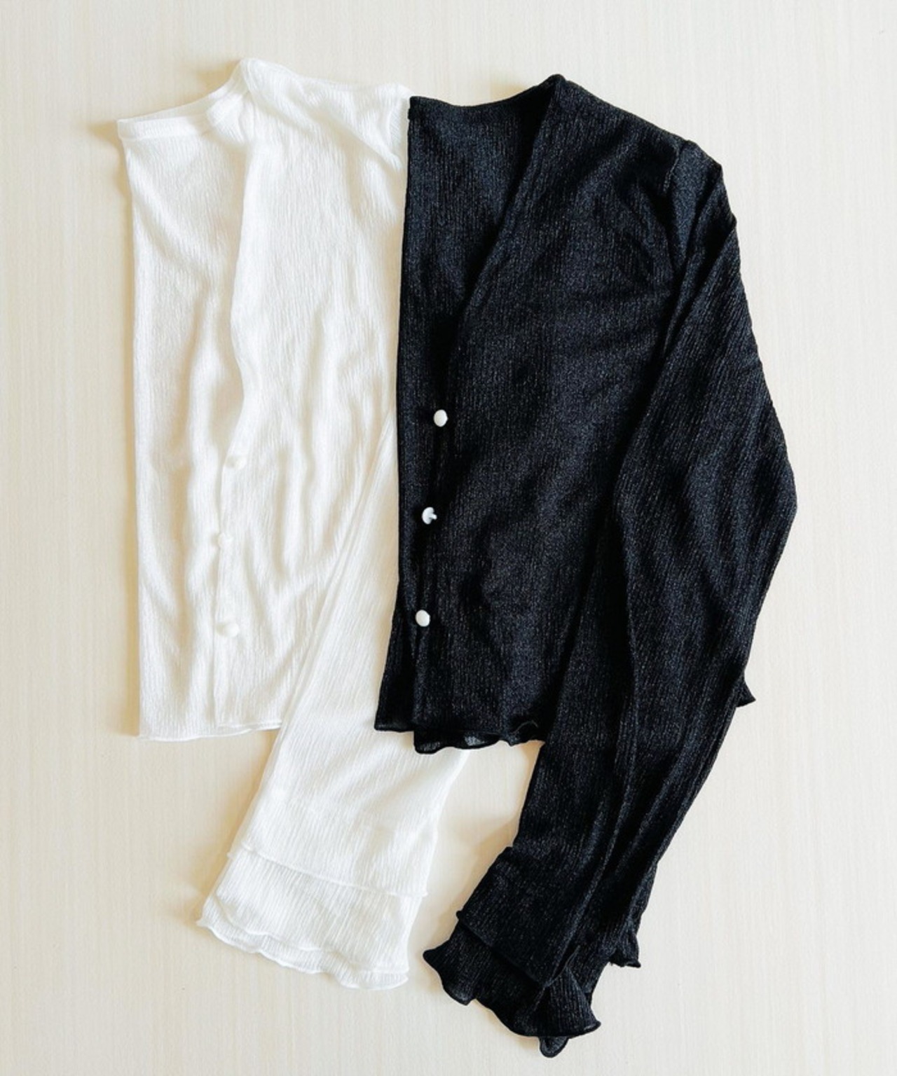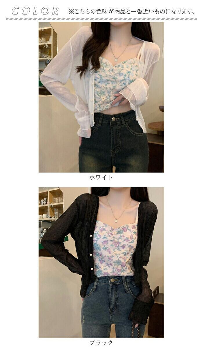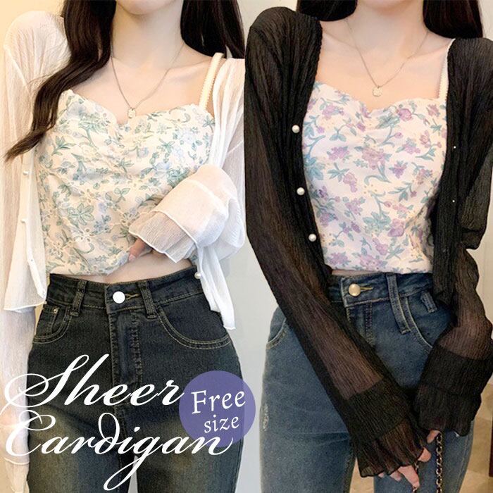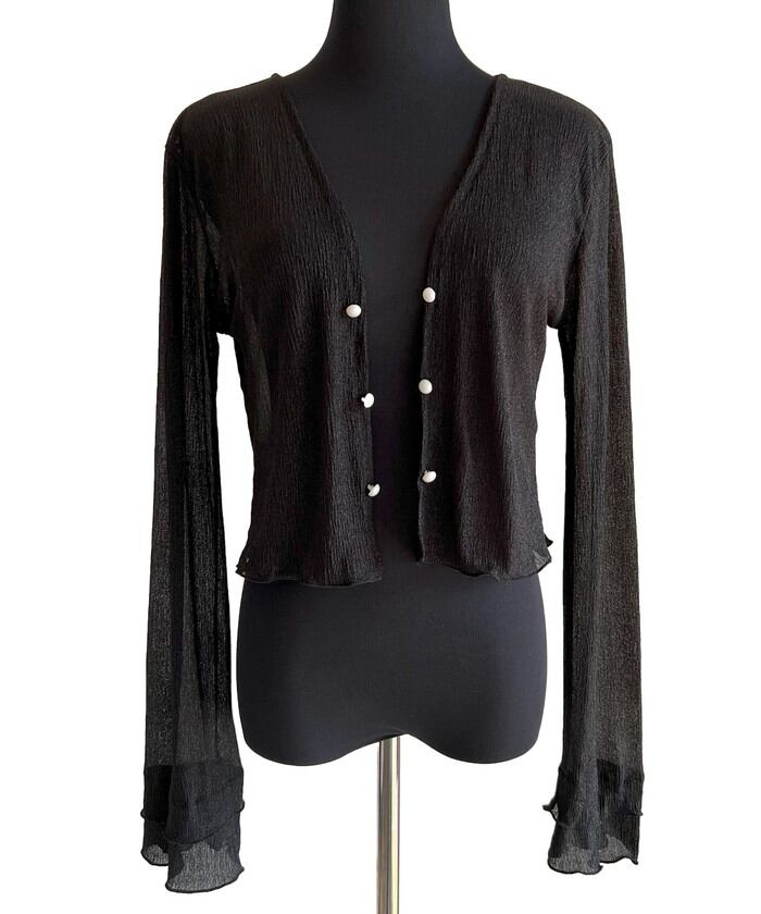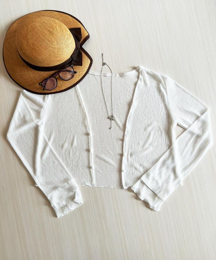 パールボタンシアーショートカーディガン
