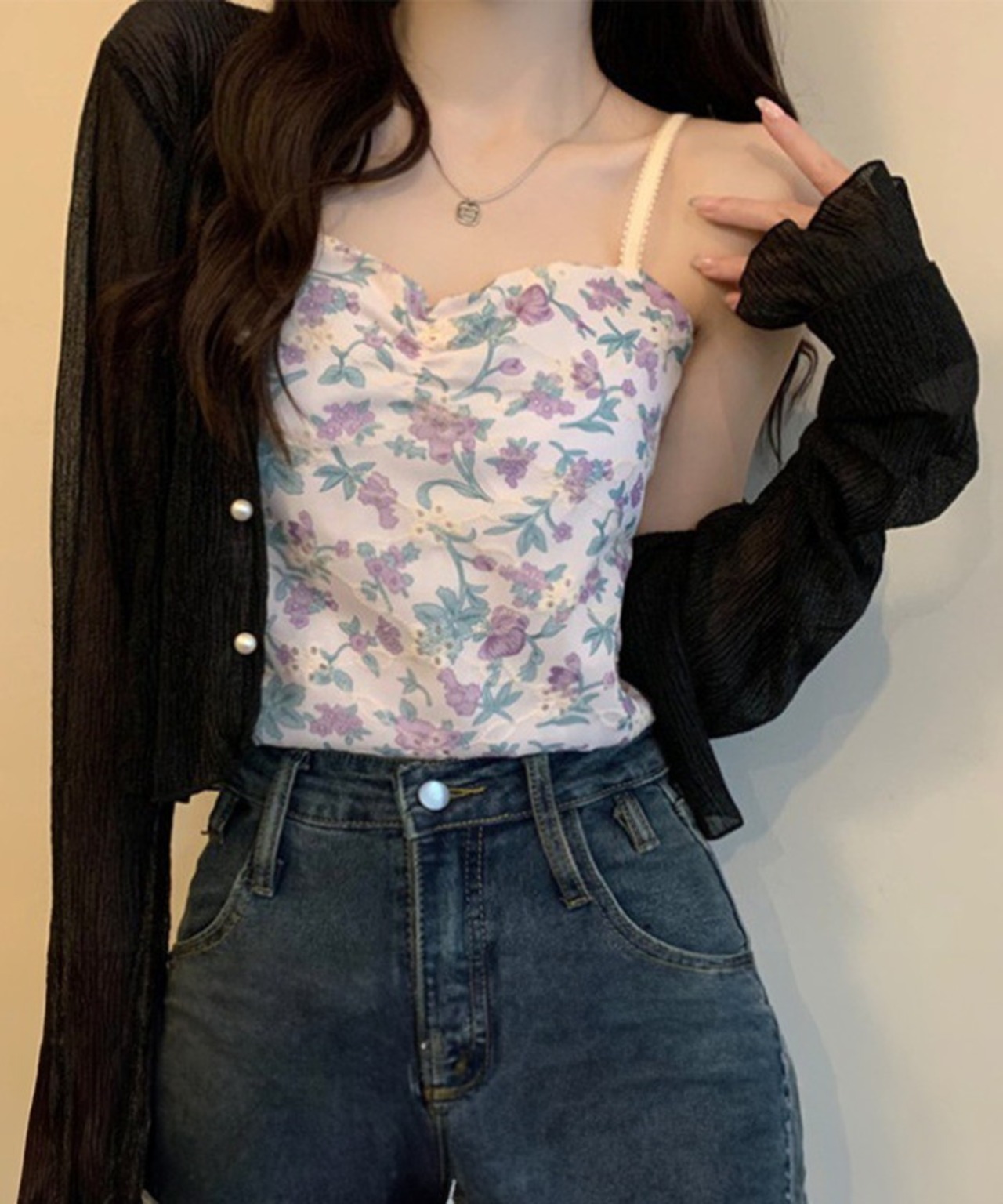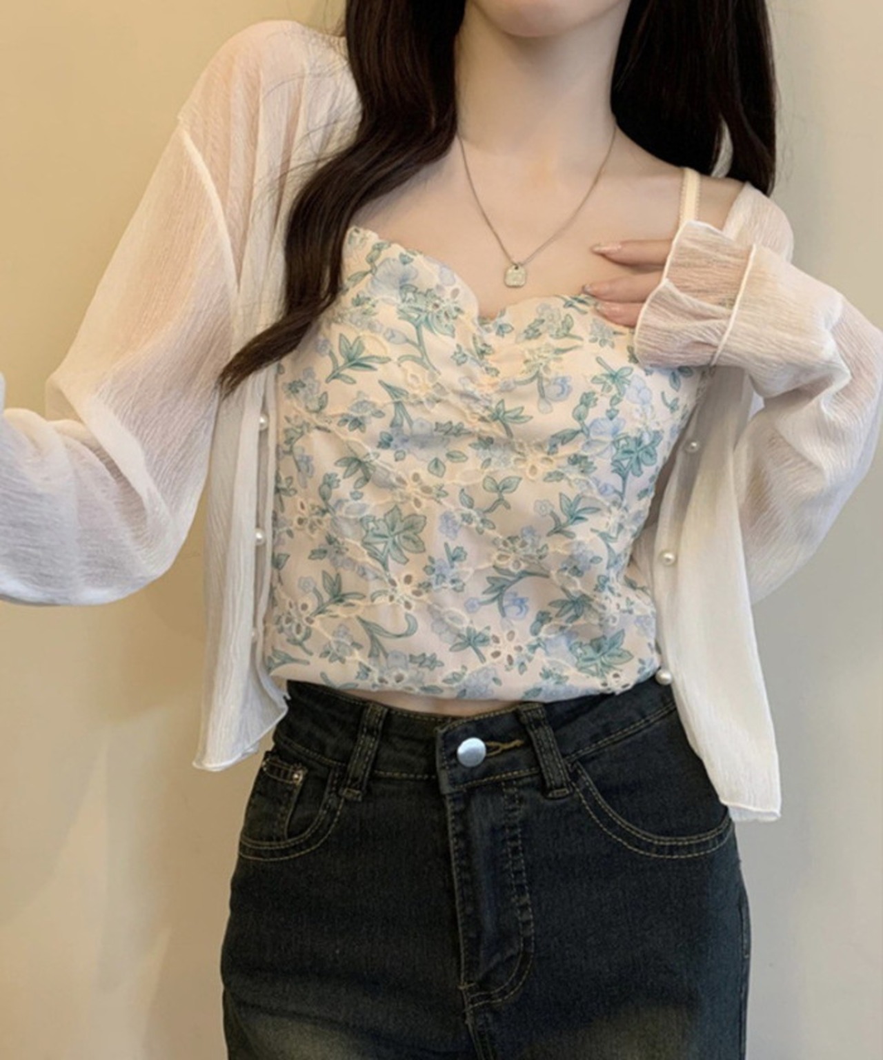 ・デニムと合わせれば、カジュアルさの中にも女性らしい抜け感を演出。