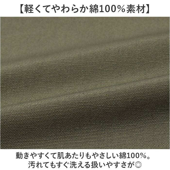 ・動きやすくて肌あたりもやさしい綿100%。汚れてもすぐ洗える扱いやすさが◎