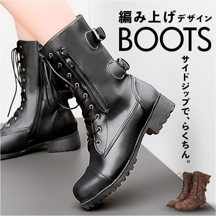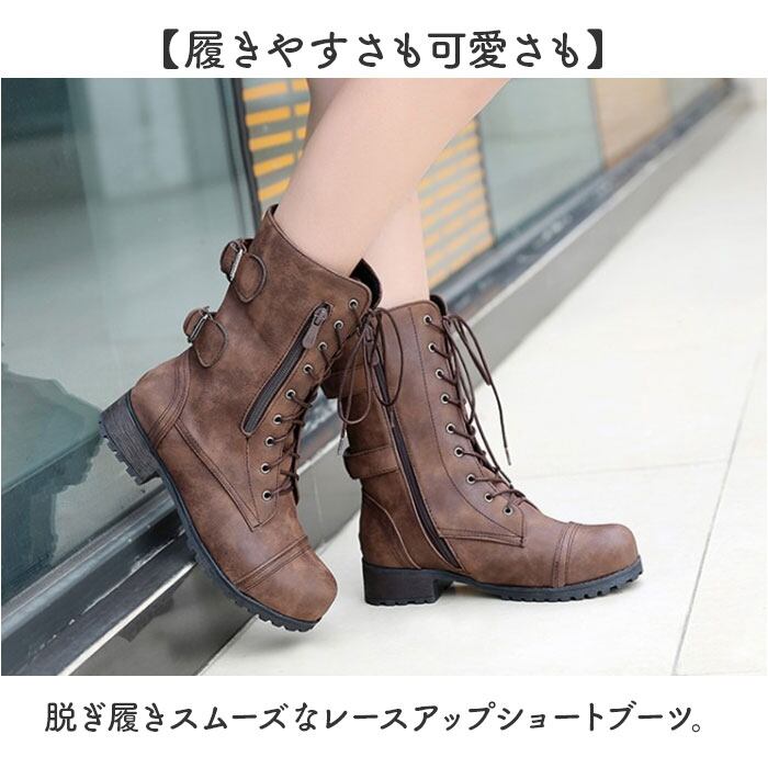 ブーツ レディース 編み上げ 通販 ショートブーツ レースアップブーツ 編み上げブーツ フェイクレザー ローヒール 歩きやすい 紐 ひも 袴 卒業式 レースアップ サイドジップ 履きやすい 袴ブーツ ショート レザー 靴 シューズ 女性 女子 レディース靴