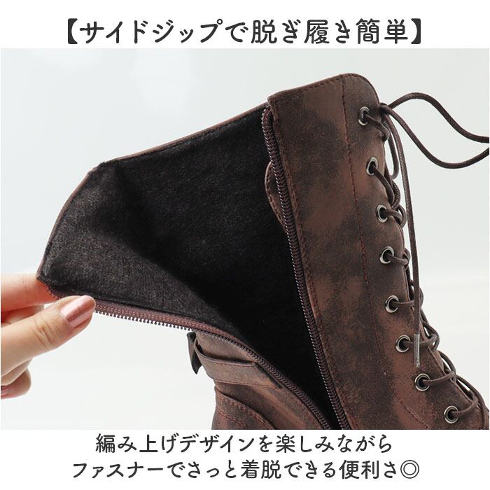 ・編み上げデザインを楽しみながらファスナーでさっと着脱できる便利さ◎