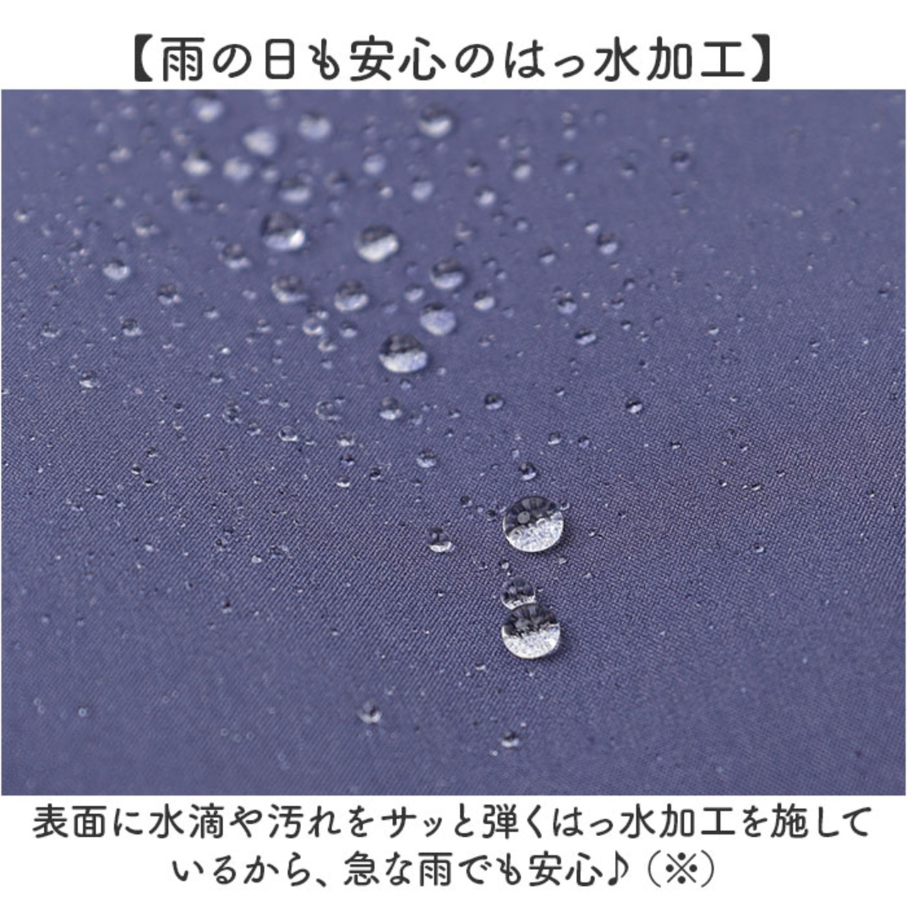・表面に水滴や汚れをサッと弾くはっ水加工を施しているから、急な雨でも安心♪