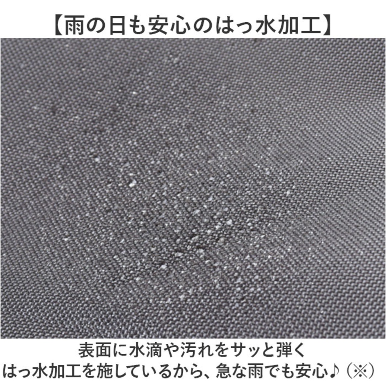・表面に水滴や汚れをサッと弾くはっ水加工を施しているから、急な雨でも安心♪